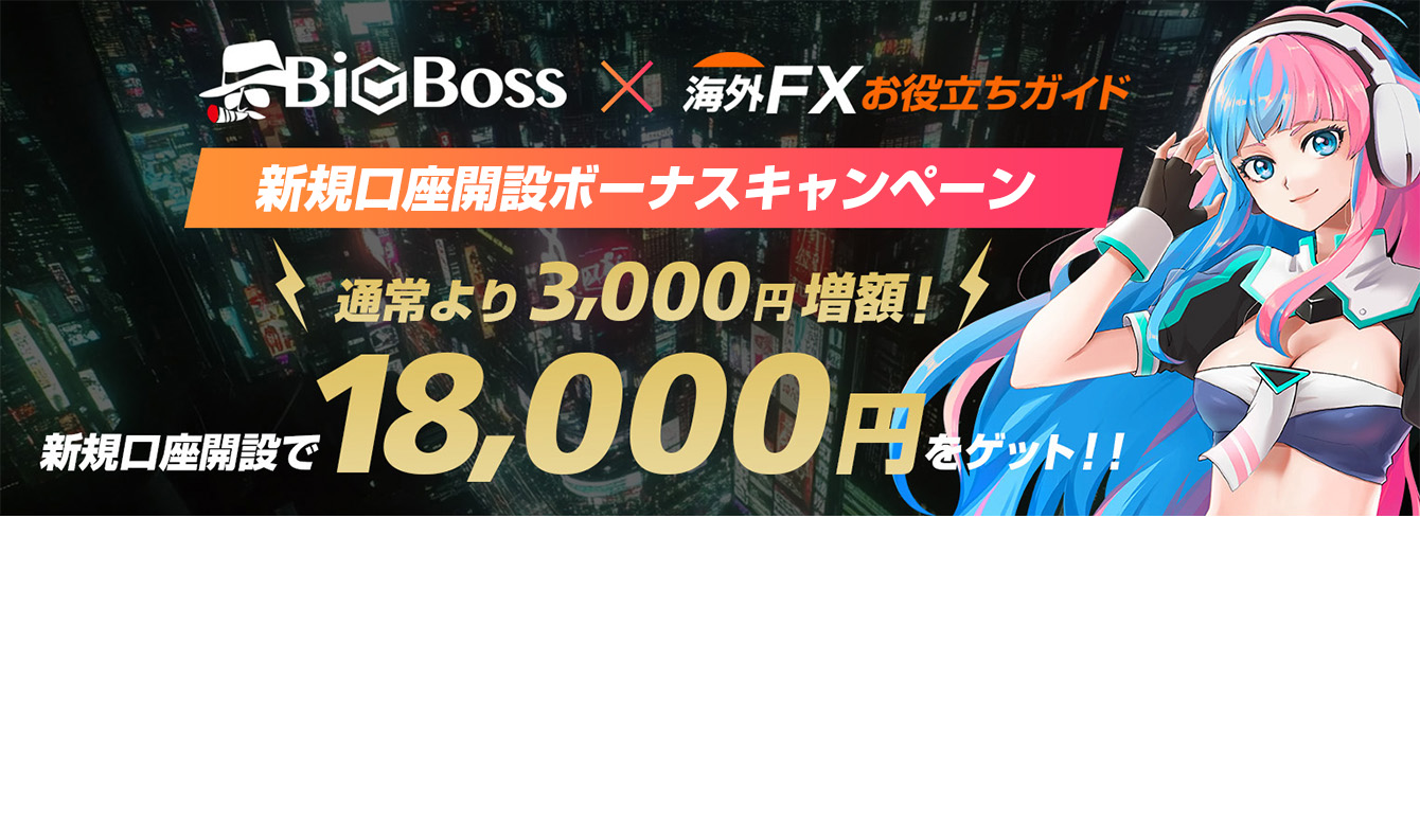 BigBoss(ビッグボス)と海外FXお役立ちガイドが新規口座開設のみなさまにコラボキャンペーンを企画。